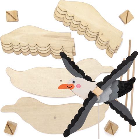 Baker Ross AT839 Seagull Wooden Windmill Kits - Pack Of 2, For Kids Arts And Crafts Projects