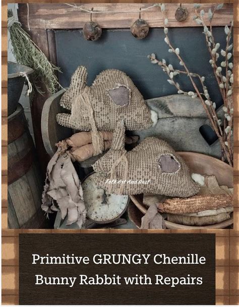 Primitive Pattern Chenille Easter Bunny Rabbits With Tatters, Repairs Tutorial Instant Download Spring Folk Art Primitive Early Simple