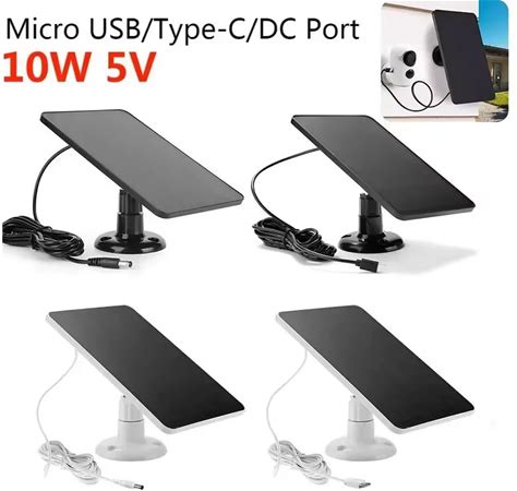 10W 5V Solar Panel Micro USB & USB-C Port Solar Charging Panel 9.8 ft Charging Cable For Security